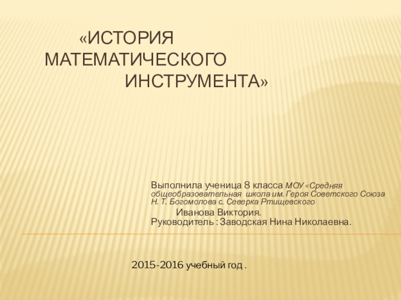 Выполнила ученица 8 класса МОУ «Средняя общеобразовательная школа им. Героя Советского Союза Н. Т. Богомолова с. Северка Ртищевского