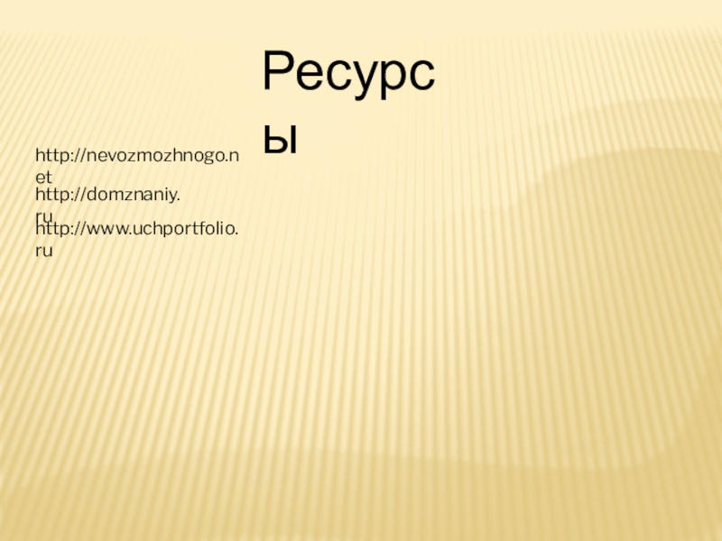 Это сайт презентаций, где можно хранить и обмениваться своими презентациями, докладами, проектами, шаблонами в формате PowerPoint с другими пользователями. Мы помогаем школьникам, студентам, учителям, преподавателям хранить и обмениваться учебными материалами.
