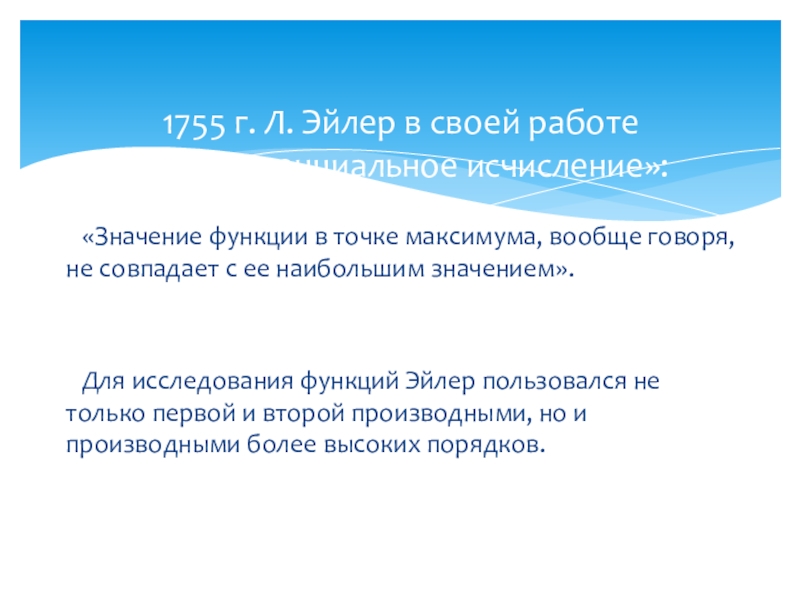1755 г. Л. Эйлер в своей работе «Дифференциальное исчисление»: