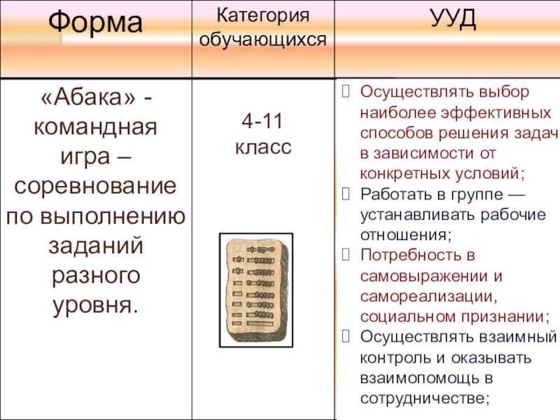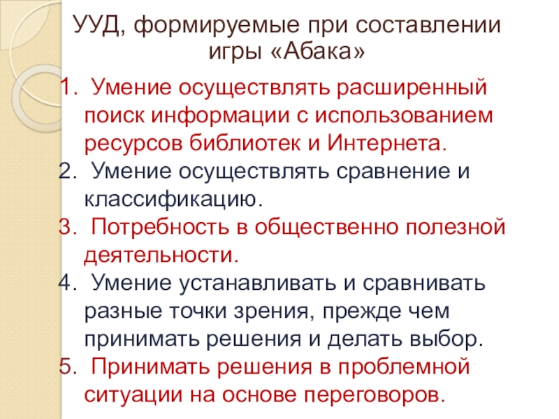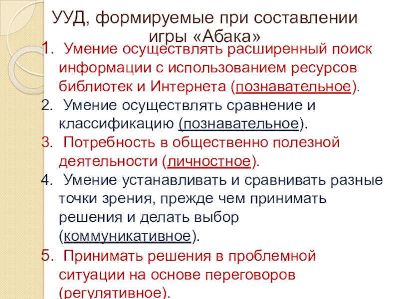 УУД, формируемые при составлении игры «Абака»