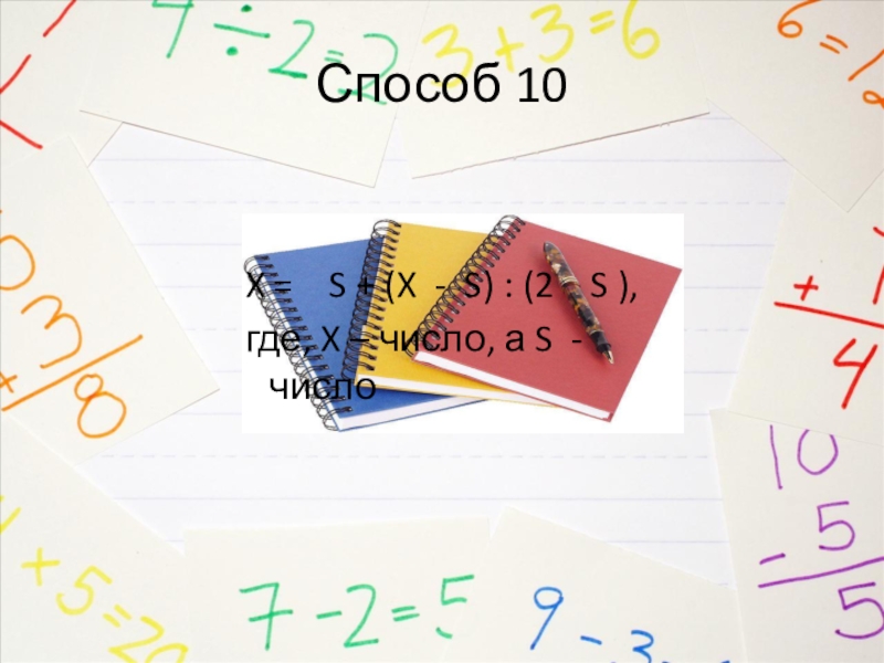 Способ 10 X =  S + (X - S) : (2  S ), где, X