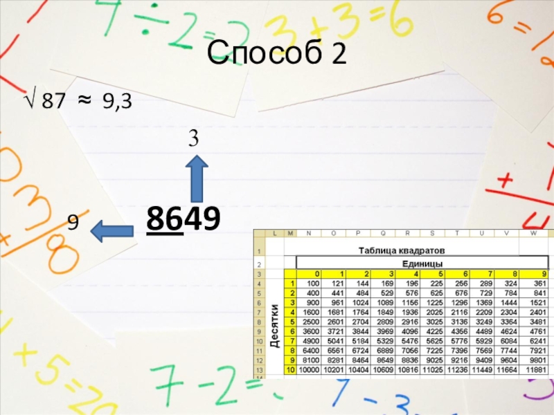 Способ 2√ 87 ≈ 9,3            3