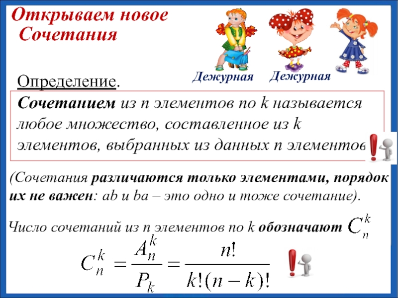 (Сочетания различаются только элементами, порядок их не важен: ab и ba – это одно и тоже сочетание).