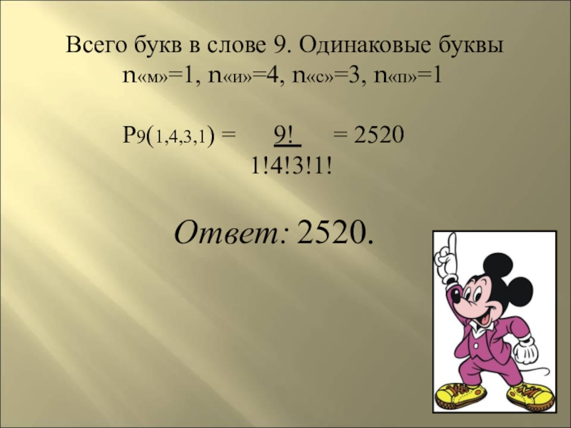 Слайд 6 Всего букв в слове 9. Одинаковые буквы