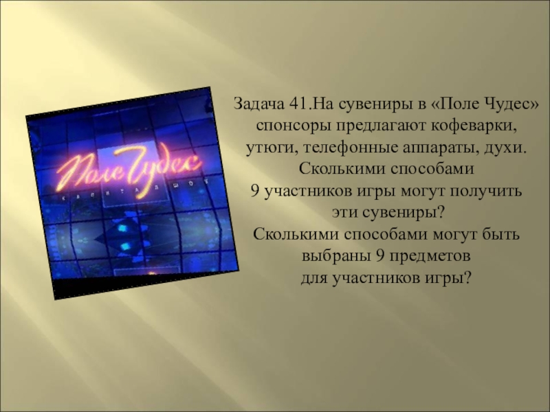Слайд 3Задача 41.На сувениры в «Поле Чудес»