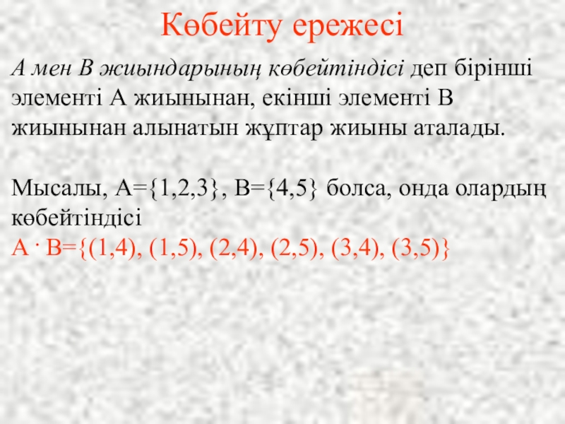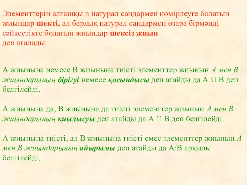 А жиынына да, В жиынына да тиісті элементтер жиынын А мен В жиындарының қиылысуы деп атайды да А ∩ В деп белгілейді.