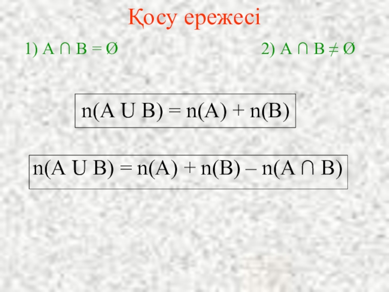 n(А U В) = n(A) + n(B) – n(A ∩ B)