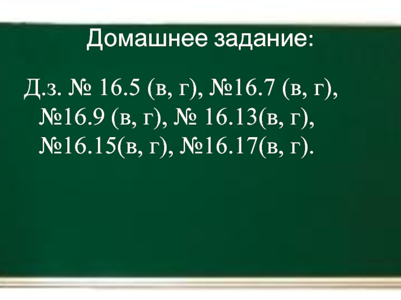 Д.з. № 16.5 (в, г), №16.7 (в, г), №16.9 (в,