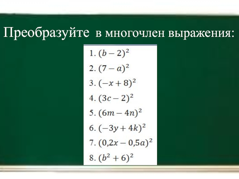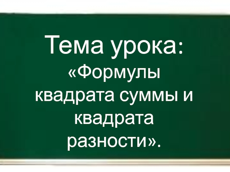 Тема урока:«Формулы квадрата суммы и квадрата разности».