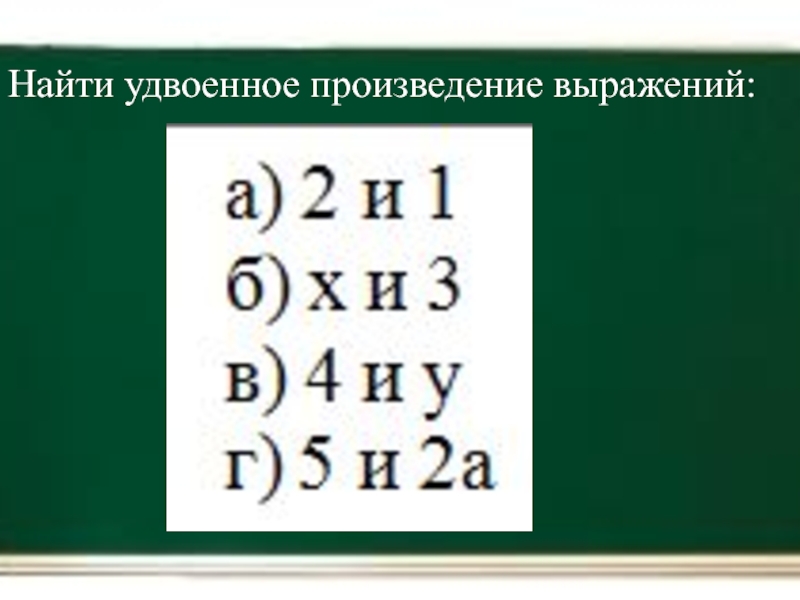 Слайд 4Представить в виде удвоенного произведения двух выражений: