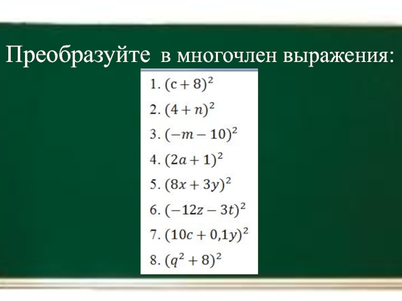 Презентация, доклад на тему Конспект урока по алгебре на тему: Квадрат суммы и квадрат разности двух выражений (урок изучения нового)