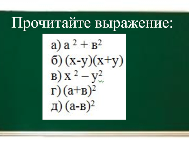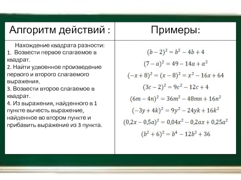 Слайд 1Квадрат суммы и квадрат разности двух выражений