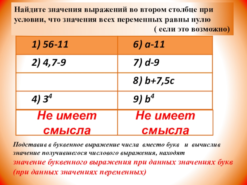 значение буквенного выражения при данных значениях букв(при данных значениях переменных)