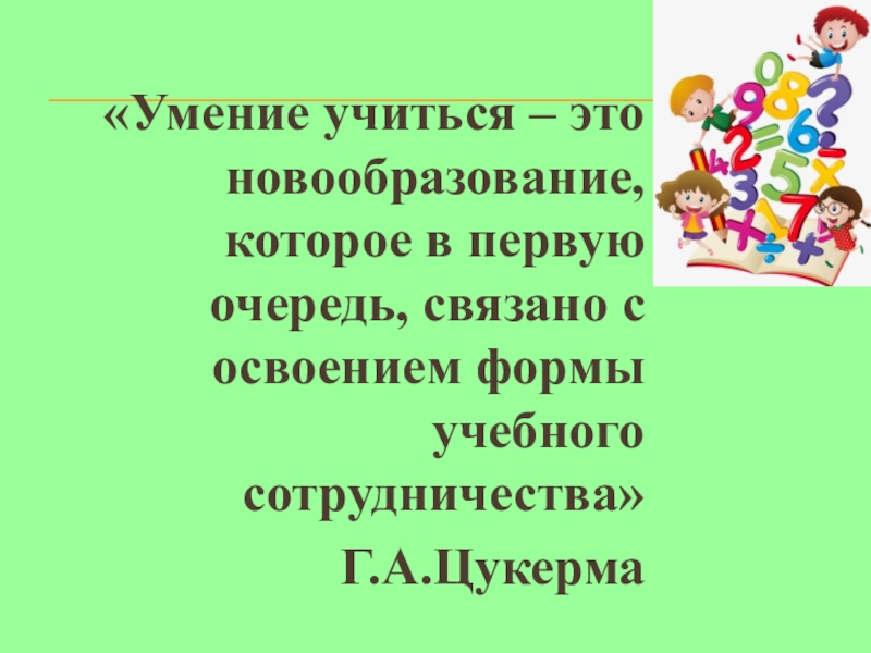 Слайд 2«Умение учиться – это новообразование, которое в первую очередь, связано с