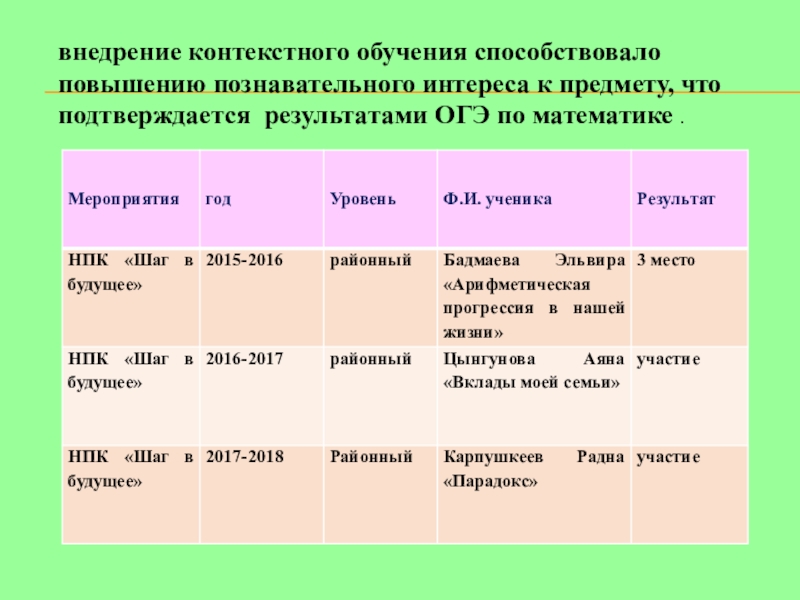 Слайд 13внедрение контекстного обучения способствовало повышению познавательного интереса к предмету, что подтверждается