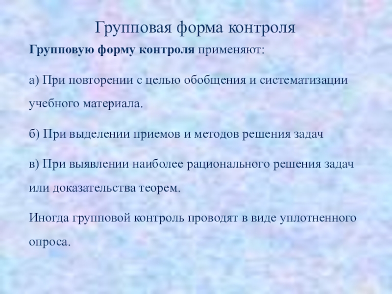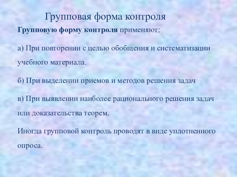 Слайд 20Групповую форму контроля применяют: