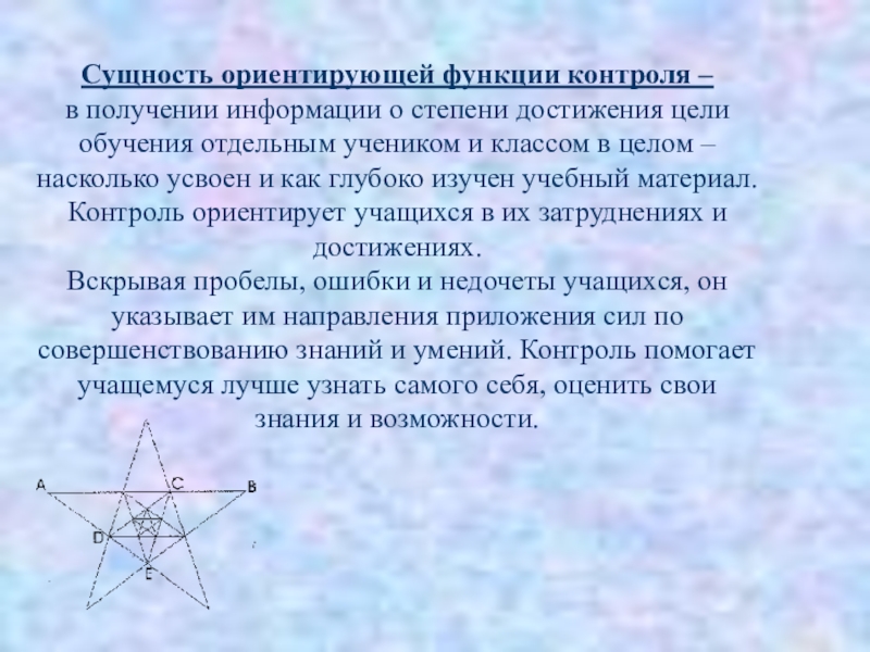 Слайд 13Сущность ориентирующей функции контроля –