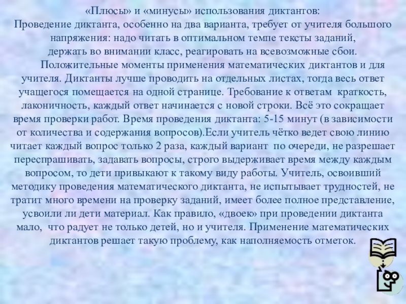 Слайд 37«Плюсы» и «минусы» использования диктантов: