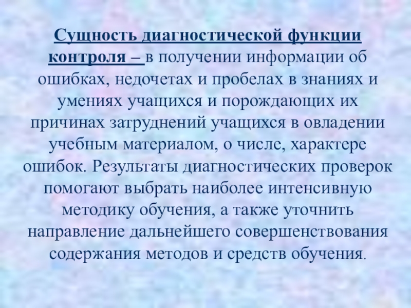 Слайд 10Сущность диагностической функции контроля – в получении информации об ошибках, недочетах