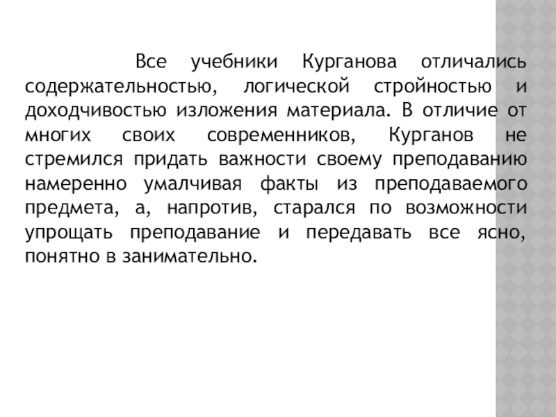 Слайд 20 Все учебники Курганова отличались содержательностью, логической стройностью и
