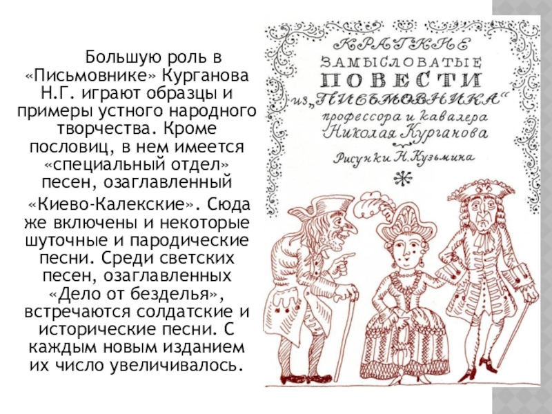 Слайд 26 Большую роль в «Письмовнике» Курганова Н.Г. играют образцы