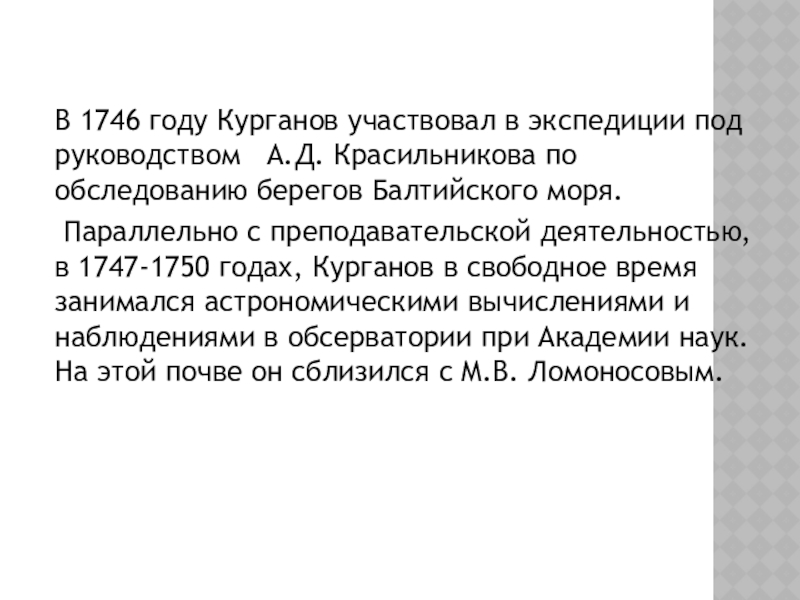 Слайд 7В 1746 году Курганов участвовал в экспедиции под руководством А.Д.