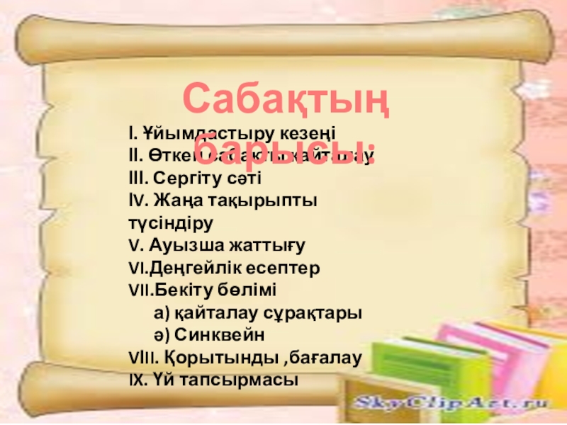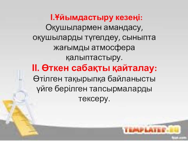 Сабақтың барысы: