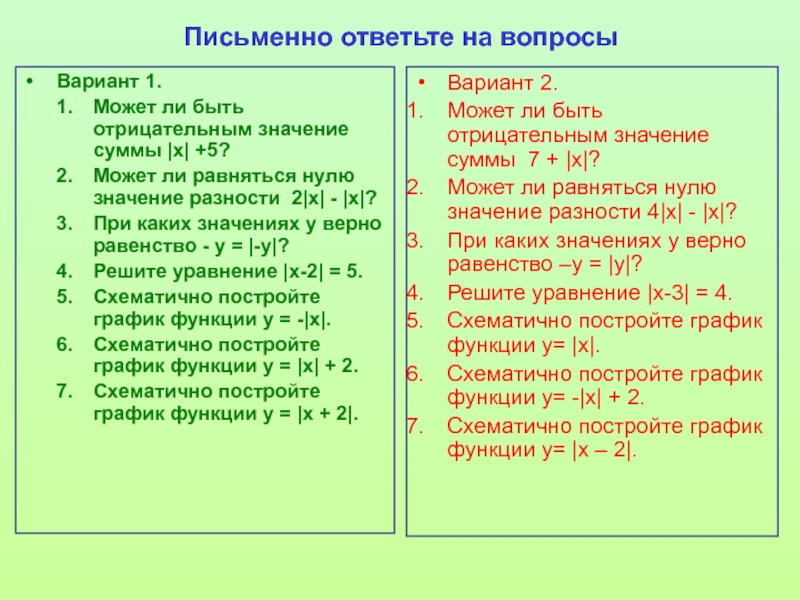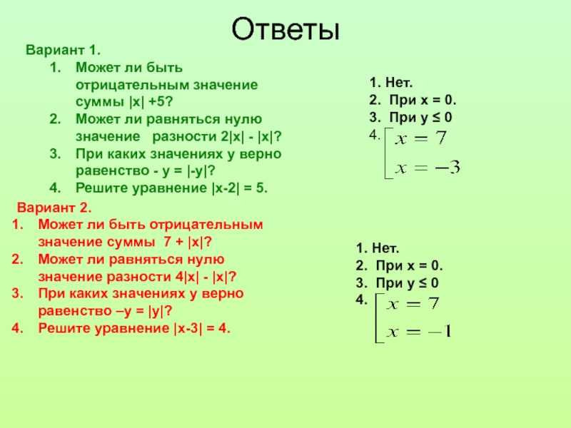 Может ли быть отрицательным значение суммы 7 + |x|?