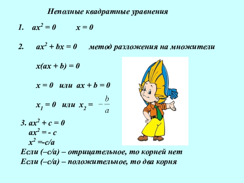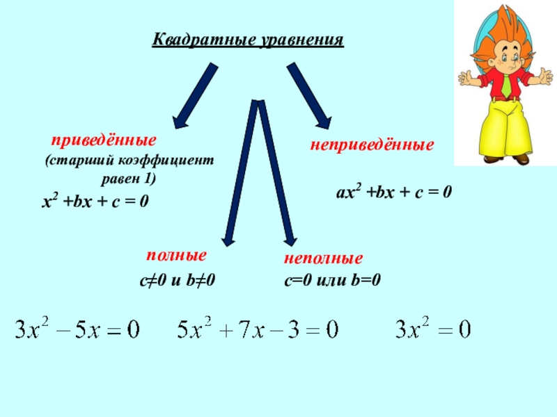 aх2 + bx + c = 0, где a, b, c – любые действительные