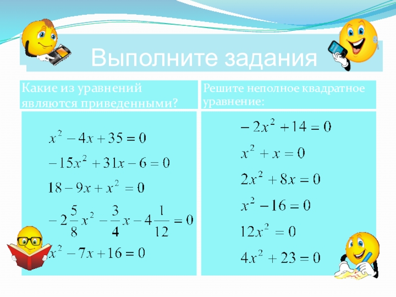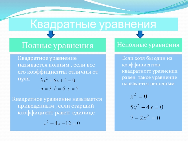 Если хотя бы один из коэффициентов квадратного уравнения равен такое уравнение называется неполным