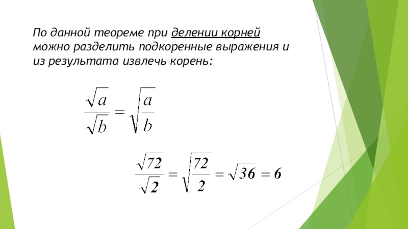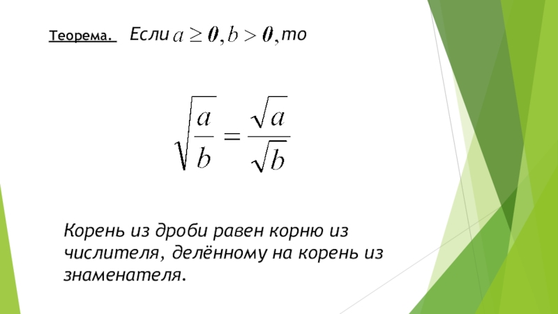 Корень из дроби равен корню из числителя, делённому на корень из знаменателя.