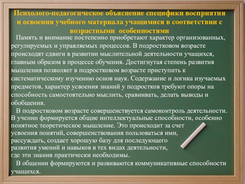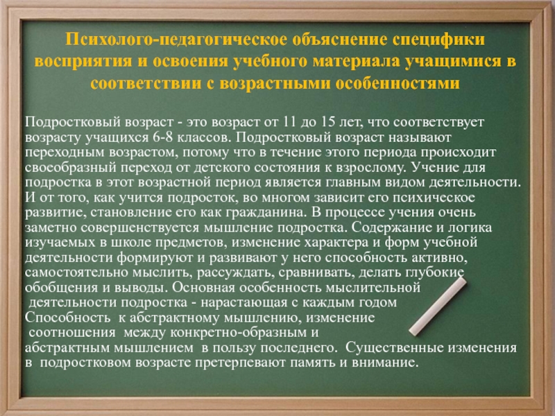 Психолого-педагогическое объяснение специфики восприятия и освоения учебного материала учащимися в соответствии с возрастными особенностями