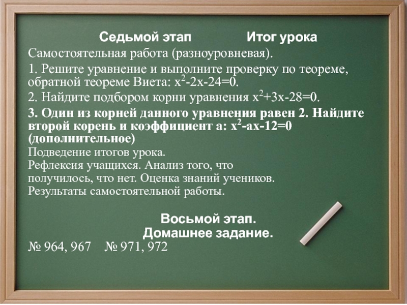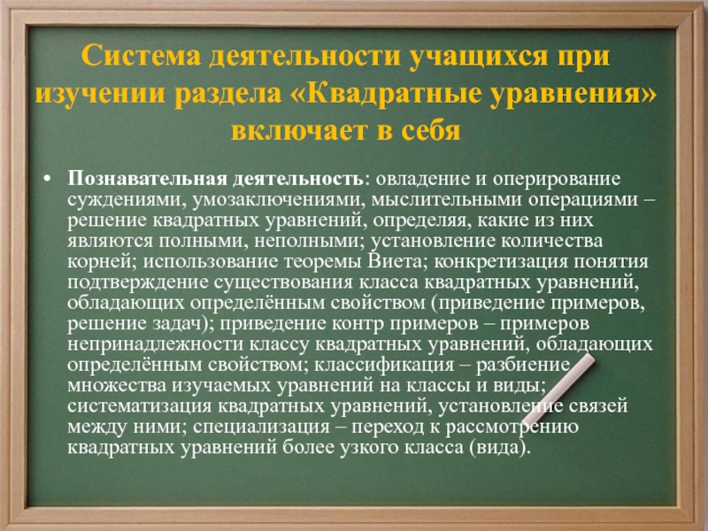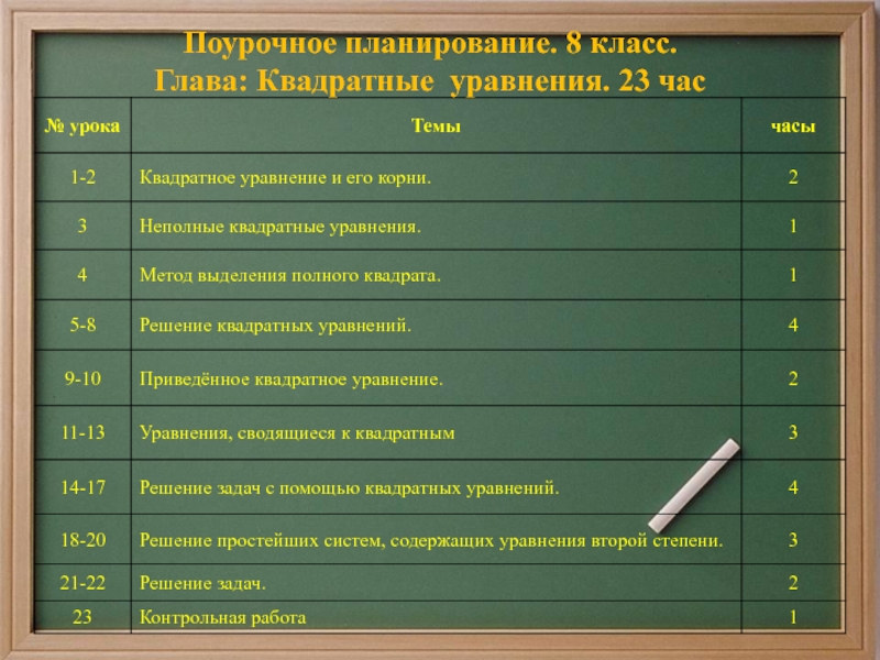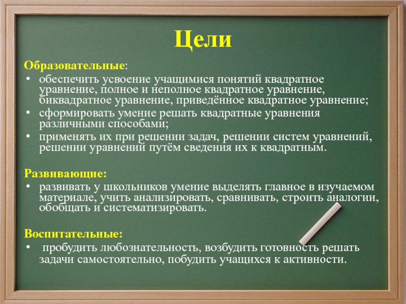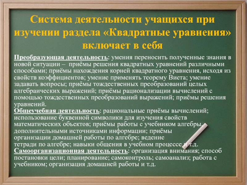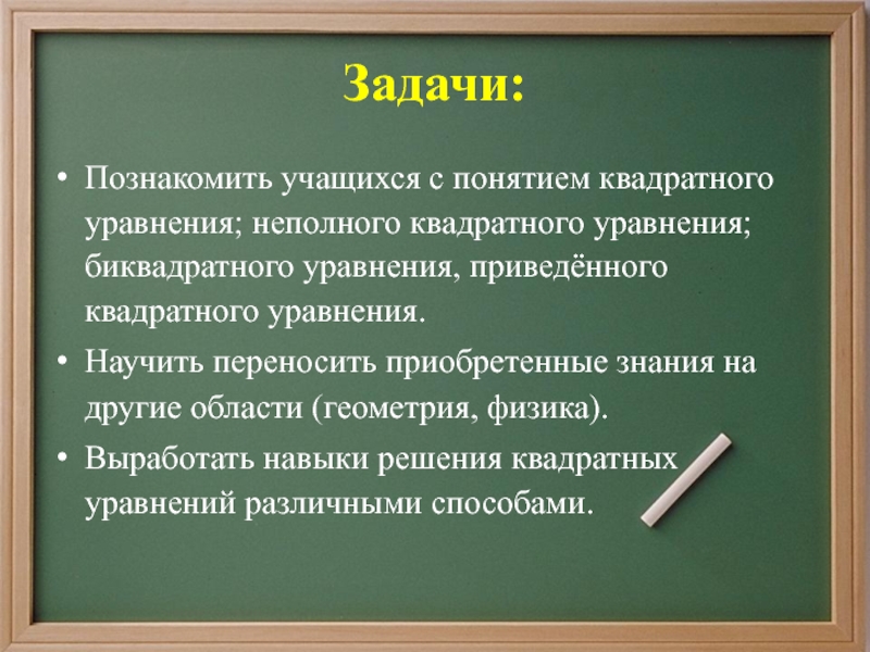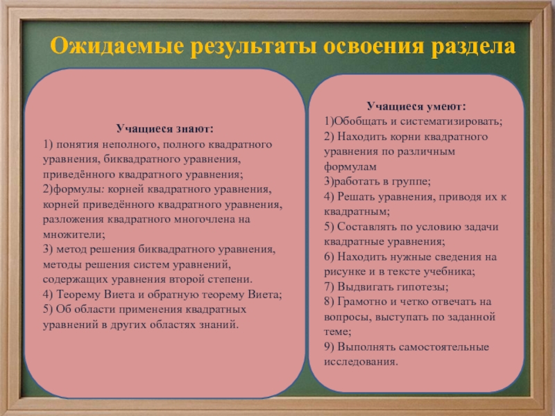 5) Составлять по условию задачи квадратные уравнения;