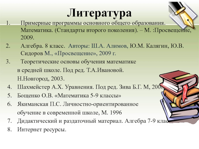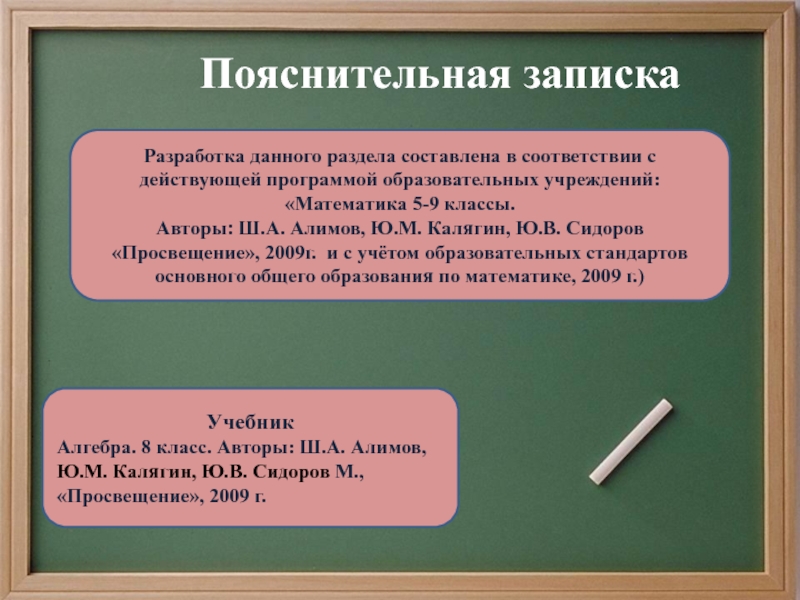 Алгебра. 8 класс. Авторы: Ш.А. Алимов, Ю.М. Калягин, Ю.В. Сидоров М., «Просвещение», 2009 г.