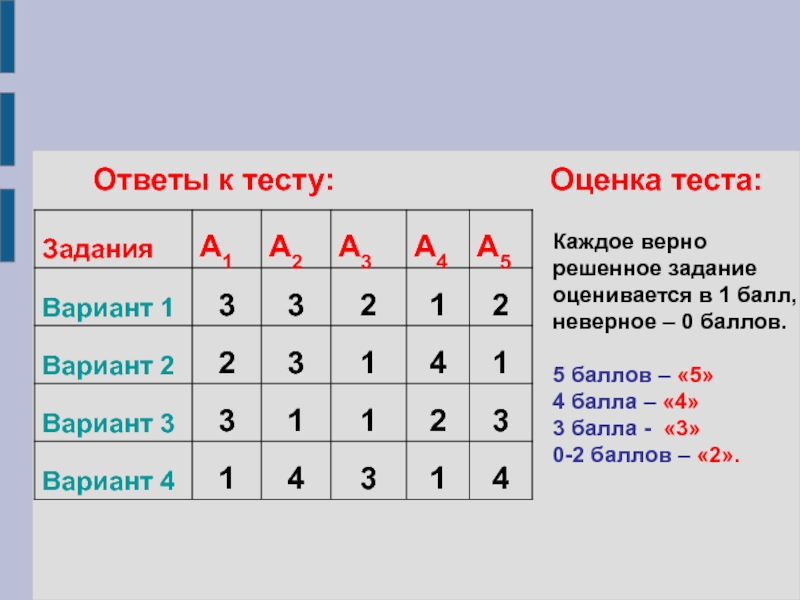 Каждое верно решенное задание оценивается в 1 балл, неверное – 0 баллов.