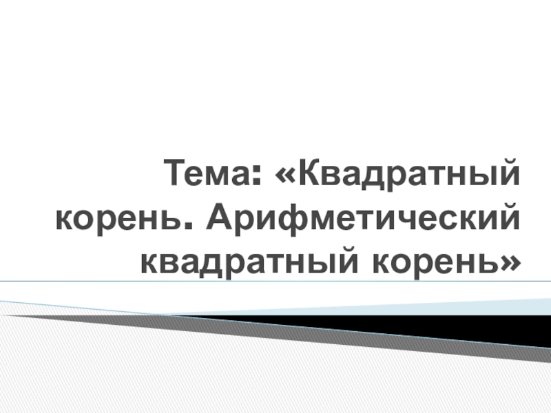 Слайд 1Тема: «Квадратный корень. Арифметический квадратный корень»