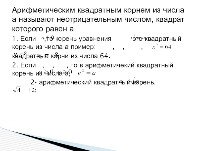 Слайд 7Арифметическим квадратным корнем из числа а называют неотрицательным числом, квадрат которого