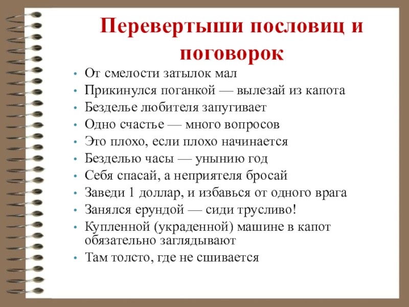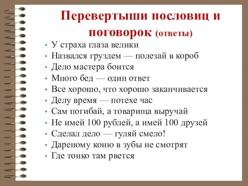 Слайд 162Перевертыши пословиц и поговорок (ответы)