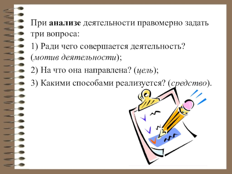 Деятельность субъектна, так как подчинена потребностям, мотивам и целям индивида (субъекта)