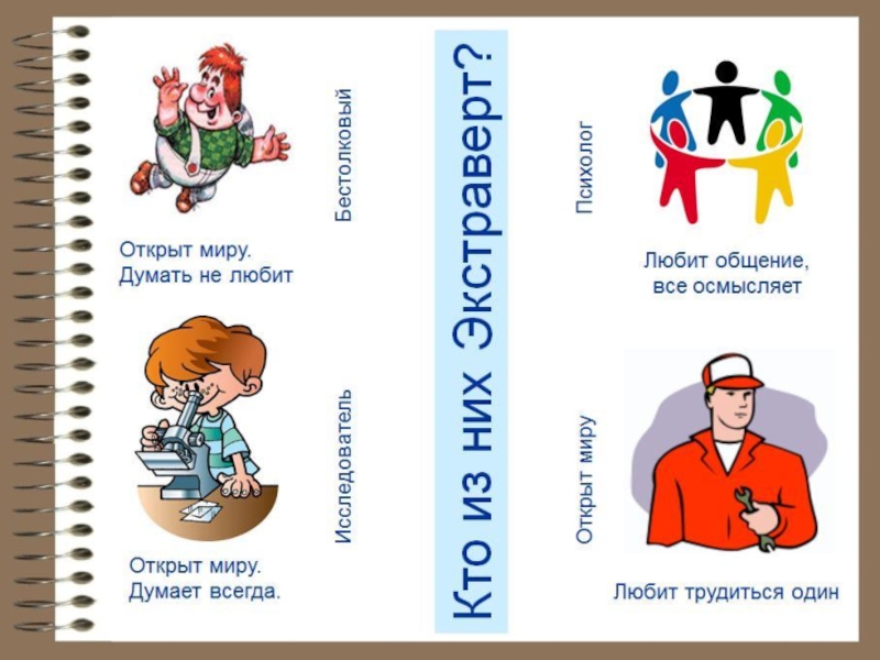 Экстраверты обычно подвижны, быстро образуют связи и привязанности; движущей силой для них выступают внешние факторы.