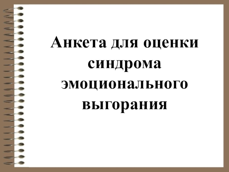 Слайд 155Анкета для оценки синдрома эмоционального выгорания
