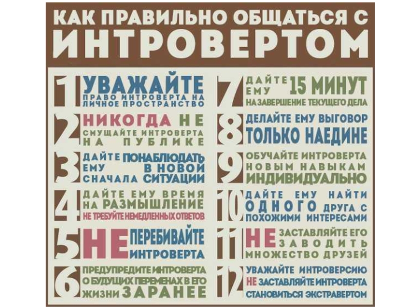 Интроверты, как правило, созерцательны, стремятся к уединению, их интерес сосредоточен на самих себе.
