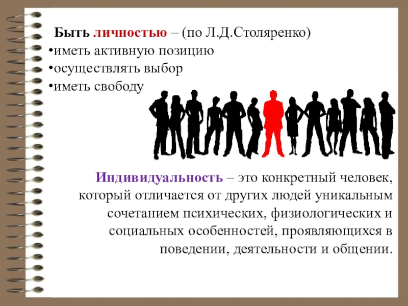 Слайд 9Индивидуальность – это конкретный человек, который отличается от других людей уникальным