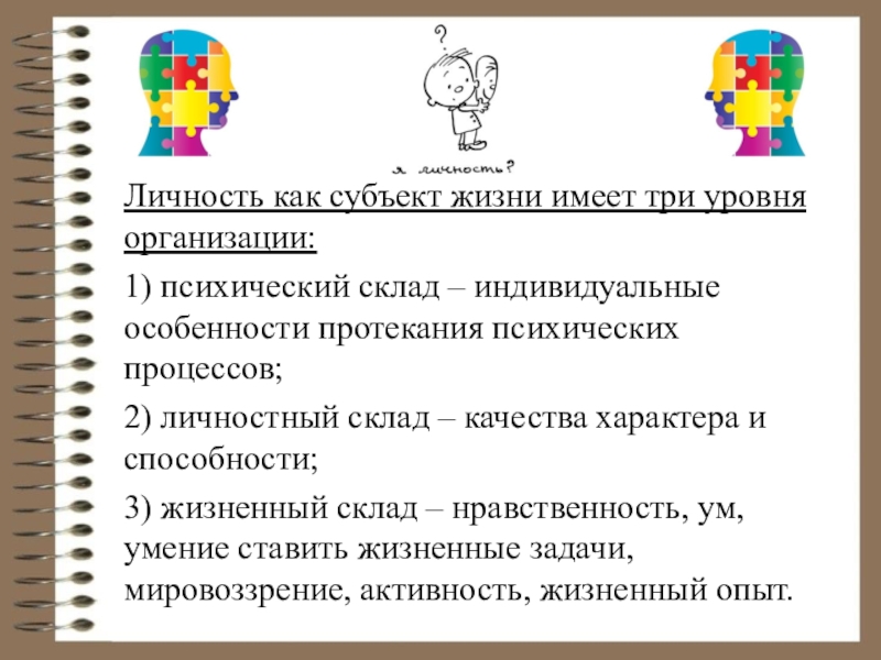 сочетанием психических, физиологических и социальных особенностей, проявляющихся в поведении, деятельности и общении.
