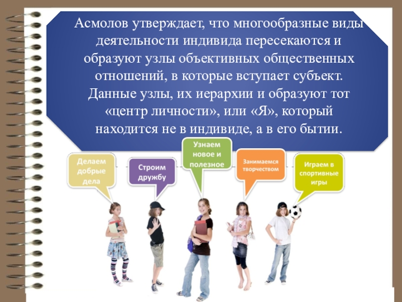 Внутреннее богатство личности определяется разнообразием видов деятельности, в которые реально включен человек, и тем личностным смыслом, который наполняет он эти виды деятельности.