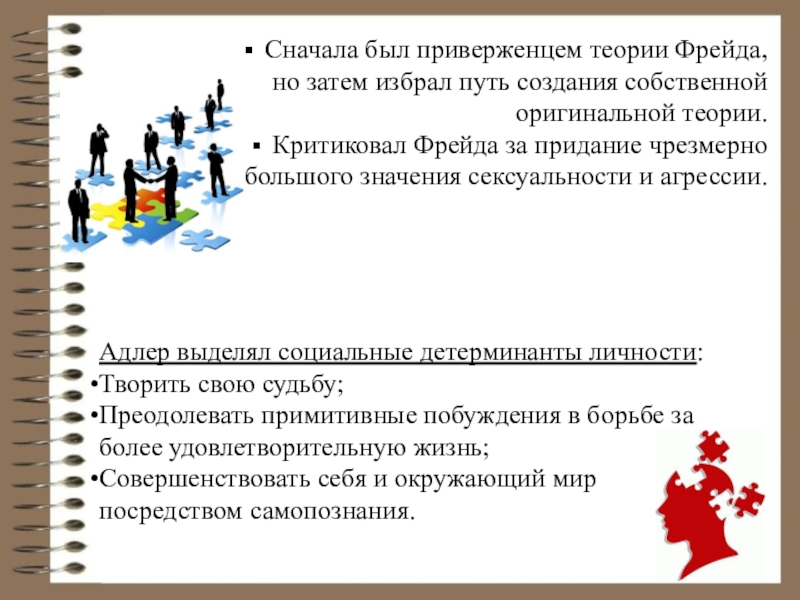 Слайд 26Сначала был приверженцем теории Фрейда, но затем избрал путь создания собственной