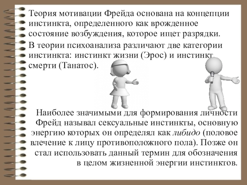 Слайд 13Теория мотивации Фрейда основана на концепции инстинкта, определенного как врожденное состояние