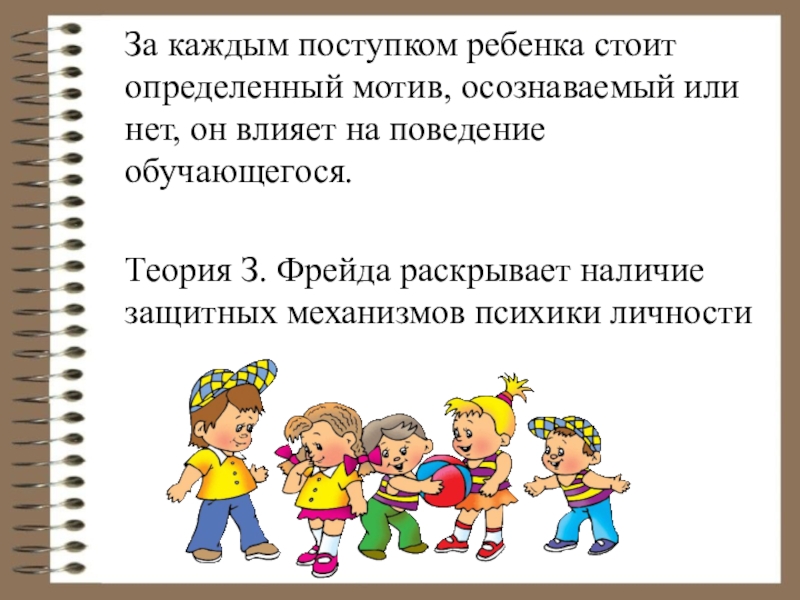 Слайд 15За каждым поступком ребенка стоит определенный мотив, осознаваемый или нет, он