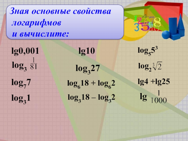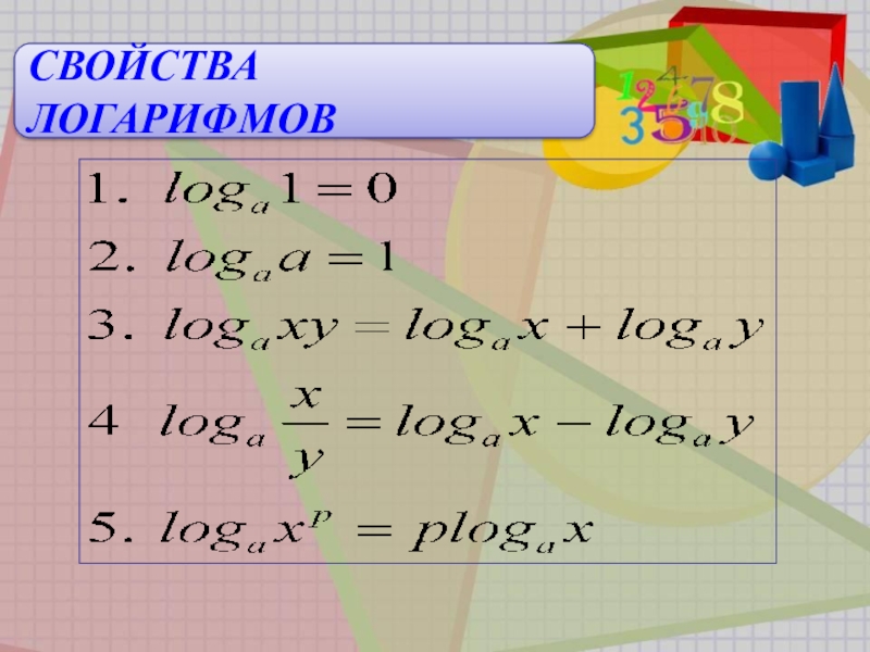 Презентация, доклад на тему Лекция по математике свойства логарифмических выражений 10 класс