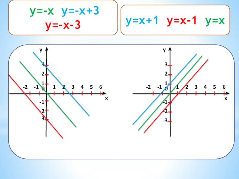 y=x+1   y=x-1  ,y=xy120123-1-2-1-23456-3xy120123-1-2-1-23456-3x y=-x y=-x+3 y=-x-3y=x+1 y=x-1 y=x
